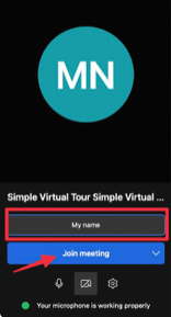 A window will open on the left, enter your name and click on the "Join Meeting" button.
