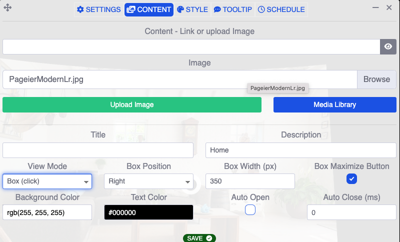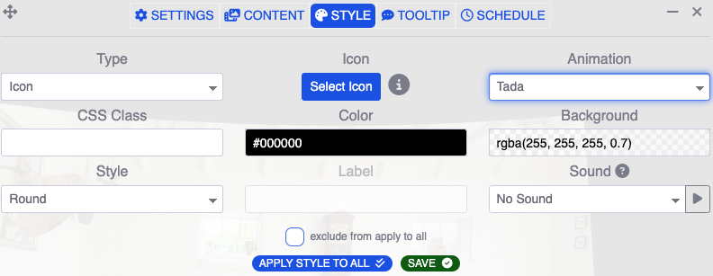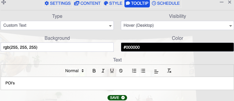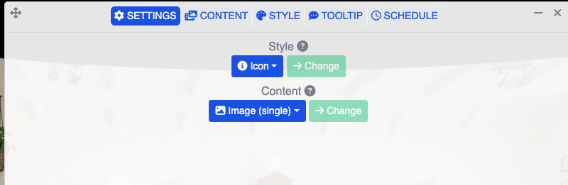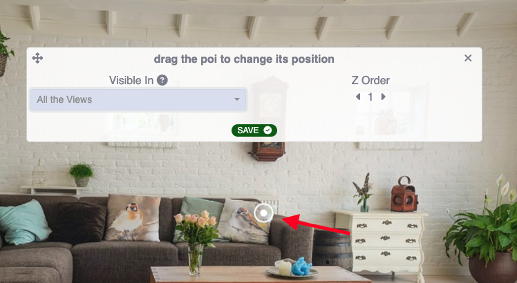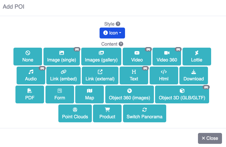 A pop-up opens and there you can select the style of POI you want to display on top of selected room, this includes:
