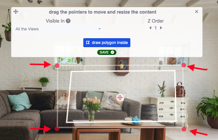 If you chose "Selection Area" or "Embedded" as the style, you can drag the 4 pointers to shape the POI area.