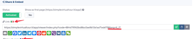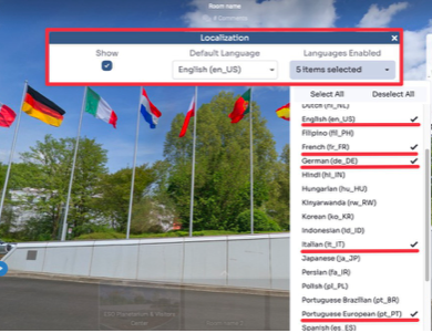 Here you can decide whether or not to display the language selector, set the default language and all those enabled for the tour.