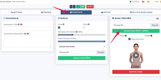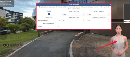 A video avatar is a virtual representation of a person that can be used to guide the one who is watching the tour and provide them with explanations.